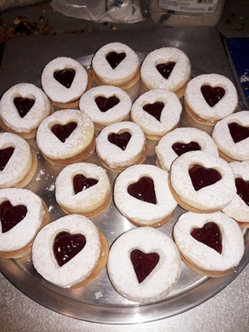 Y todo tipo de repostería Brownies Besos de nuez Galletas de coco Galletas de Corazon etc