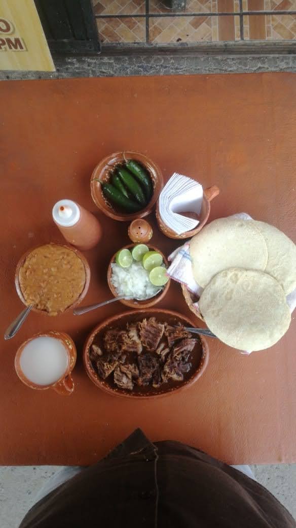 Birria en orden, taco o lonche o por kilo. Frijoles fritos adobados, quesadillas, quesadillas con carne.